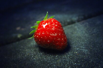 الفراولة الحمراء الزاهية على خلفية سوداء
