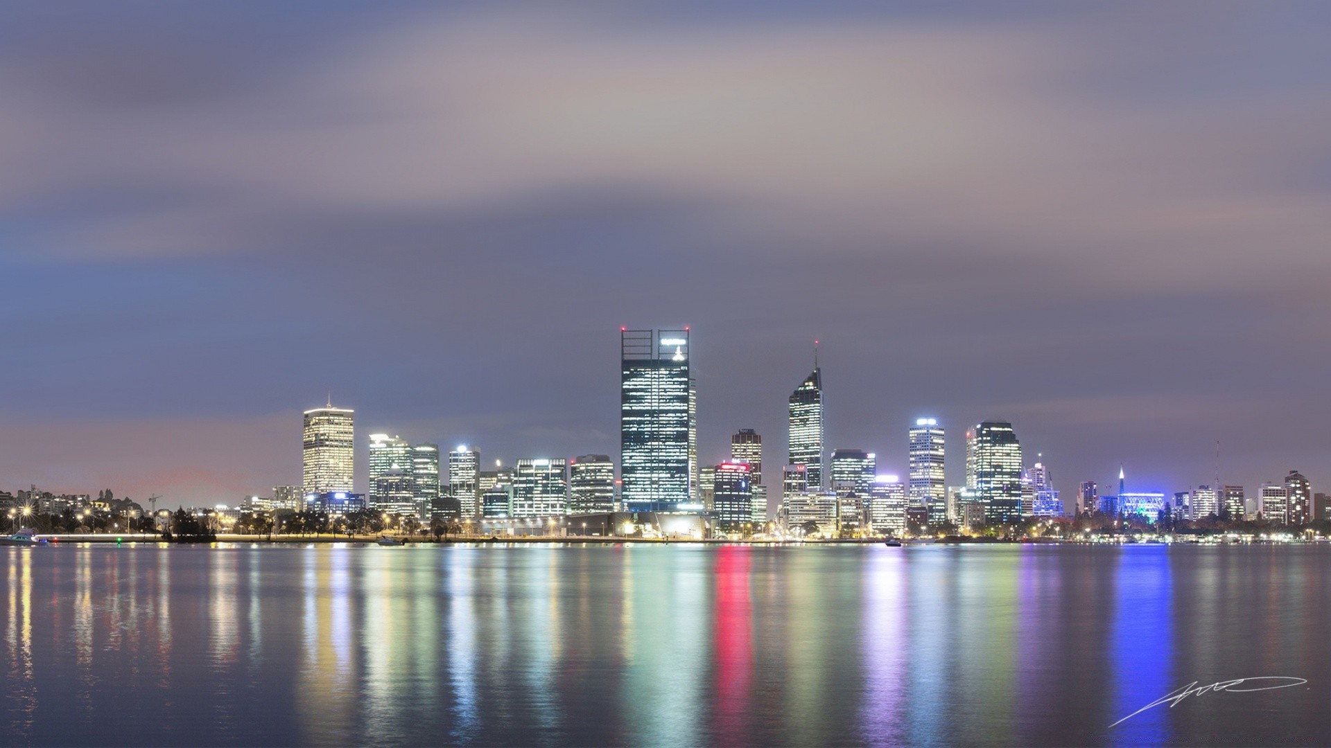 جزيرة في وسط الماء في الإضاءة الأرجواني