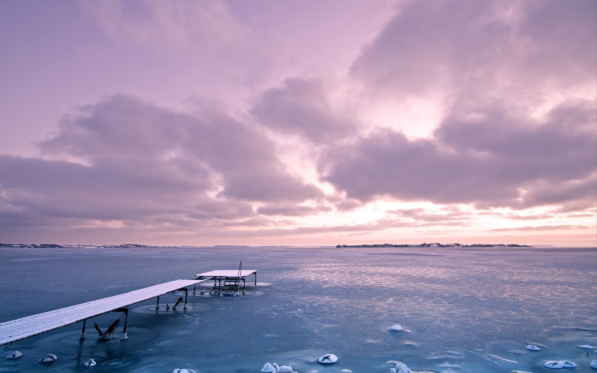 البحيرة الجليدية والسماء الأرجواني