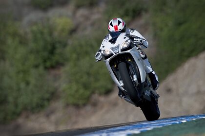 راكب الدراجة النارية على العجلة الخلفية في الحركة
