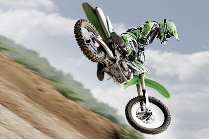 يشارك راكب الدراجة النارية في الرياضة المتطرفة
