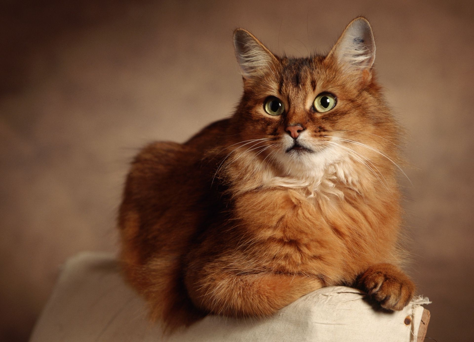 قطة حمراء رقيق مع شارب كثيف تبدو في مكان ما