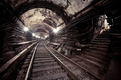 صورة بالأبيض والأسود لنفق مترو الأنفاق