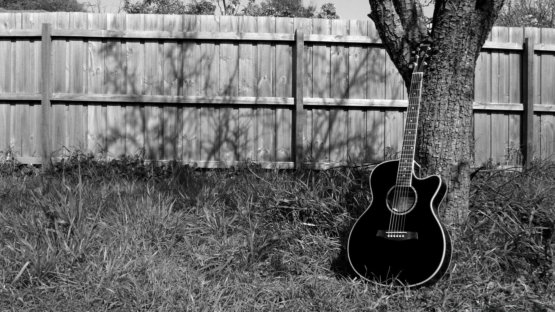 يوجد جيتار بالقرب من الشجرة