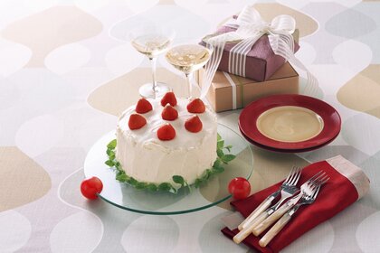 طاولة احتفالية مع هدايا وكعكة حلوة