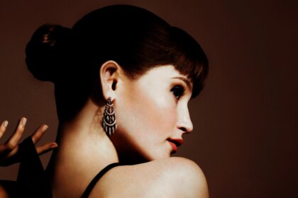 فتاة سمراء مع البتلة الأقراط