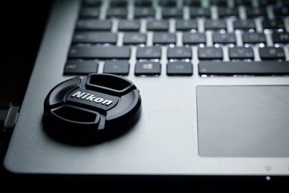 كمبيوتر محمول أحادي اللون على خلفية سوداء