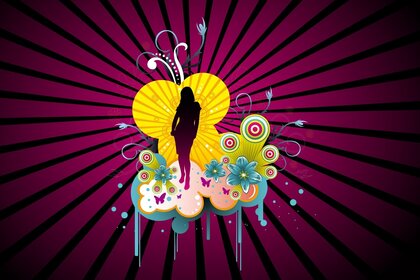 تصميم ناقلات ، صورة ظلية الإناث مع الفراشات