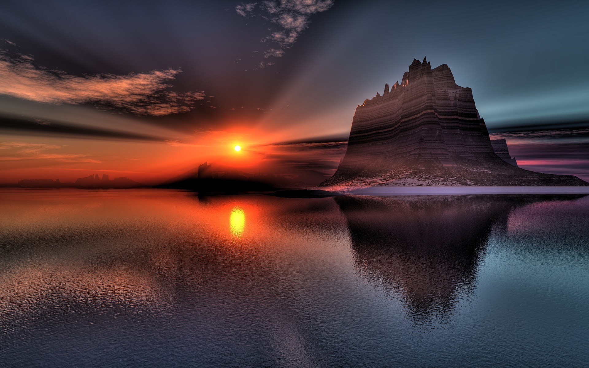 غروب الشمس في شفق البحر