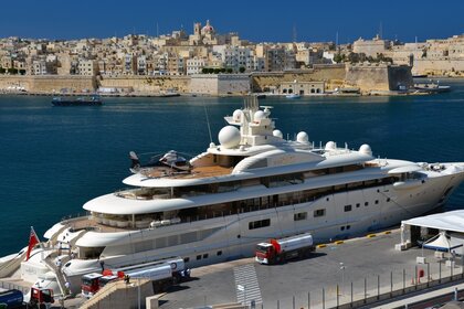 يوجد يخت أبيض في الميناء جاهز للسفر