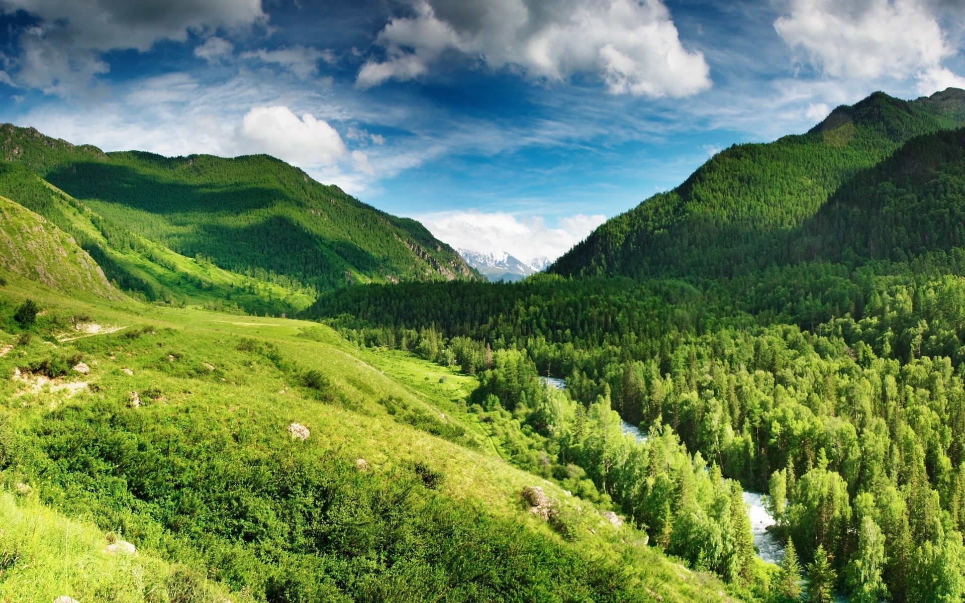 المناظر الطبيعية الجبلية ، والزهور الرائعة
