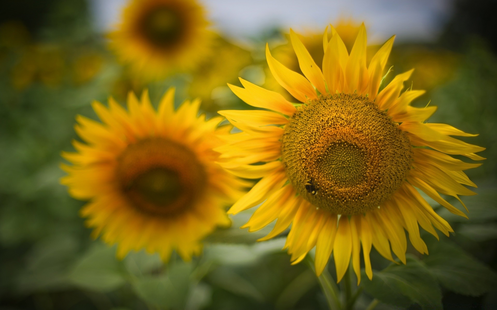 الطبيعة ، زهرة عباد الشمس على خلفية السماء