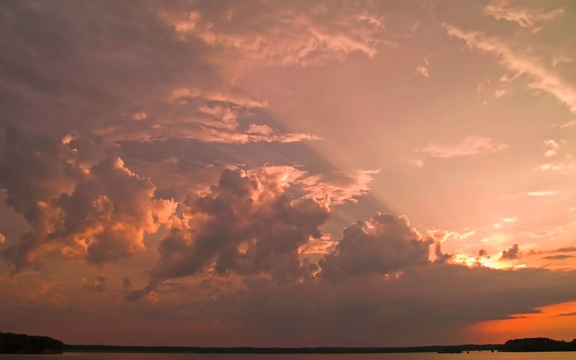 الغيوم قليلا من الشمس على الصورة كاملة فوق البحيرة