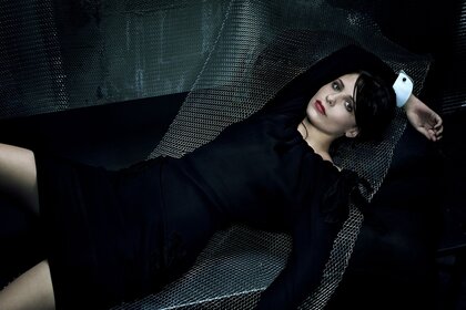 أسد أبيض وأسود ينظر إلى الكاميرا