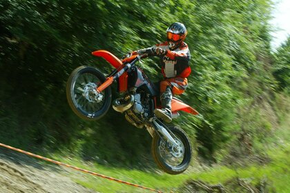 قفزة خطيرة من متسابق الدراجات النارية بين الأشجار