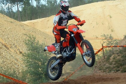 يتغلب المشارك في سباق الدراجات النارية بسهولة على المسار