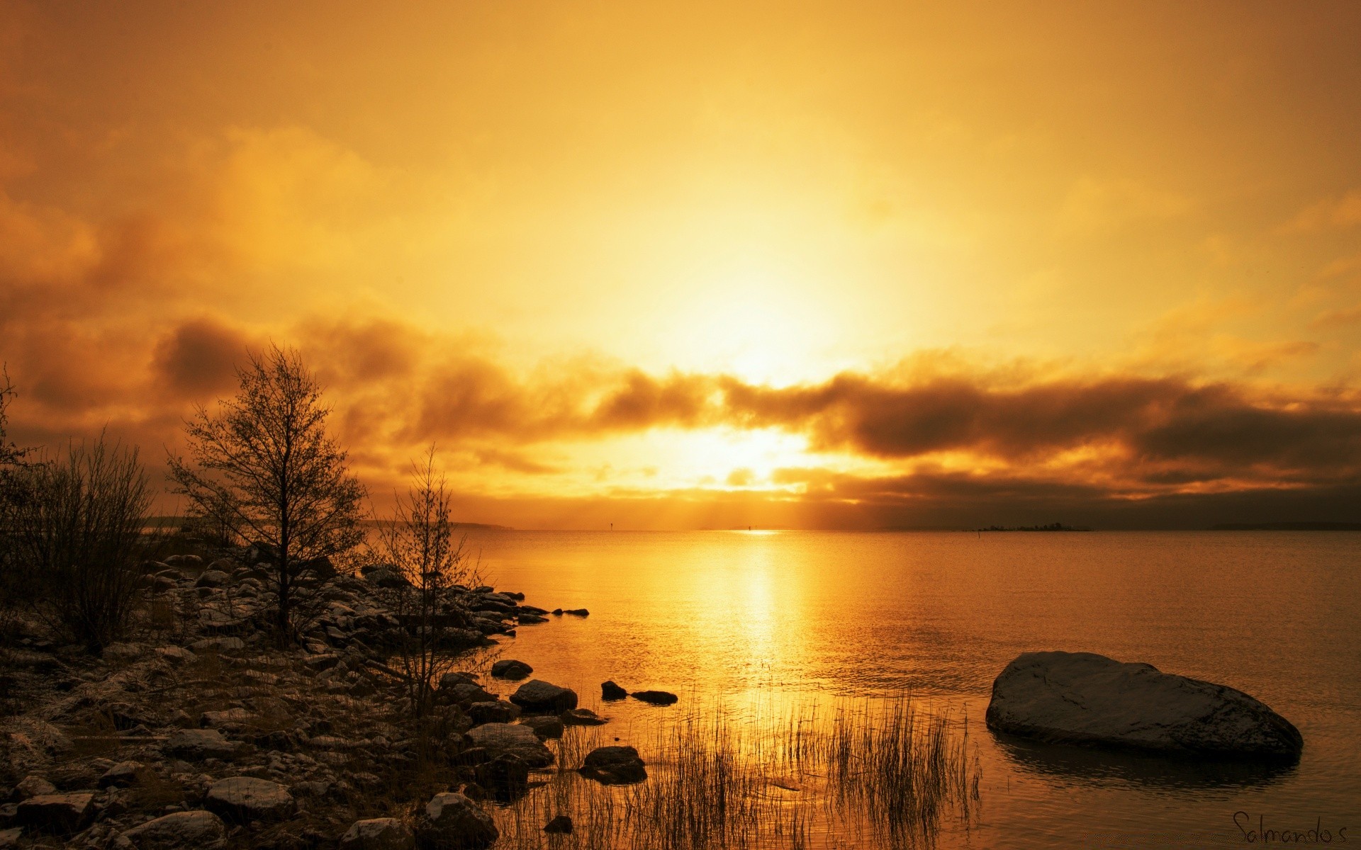 صور الشمس عند غروب الشمس على البحيرة عند الغسق