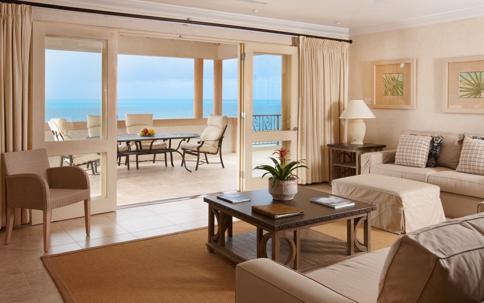 إطلالة على الشرفة من غرفة المعيشة المشرقة