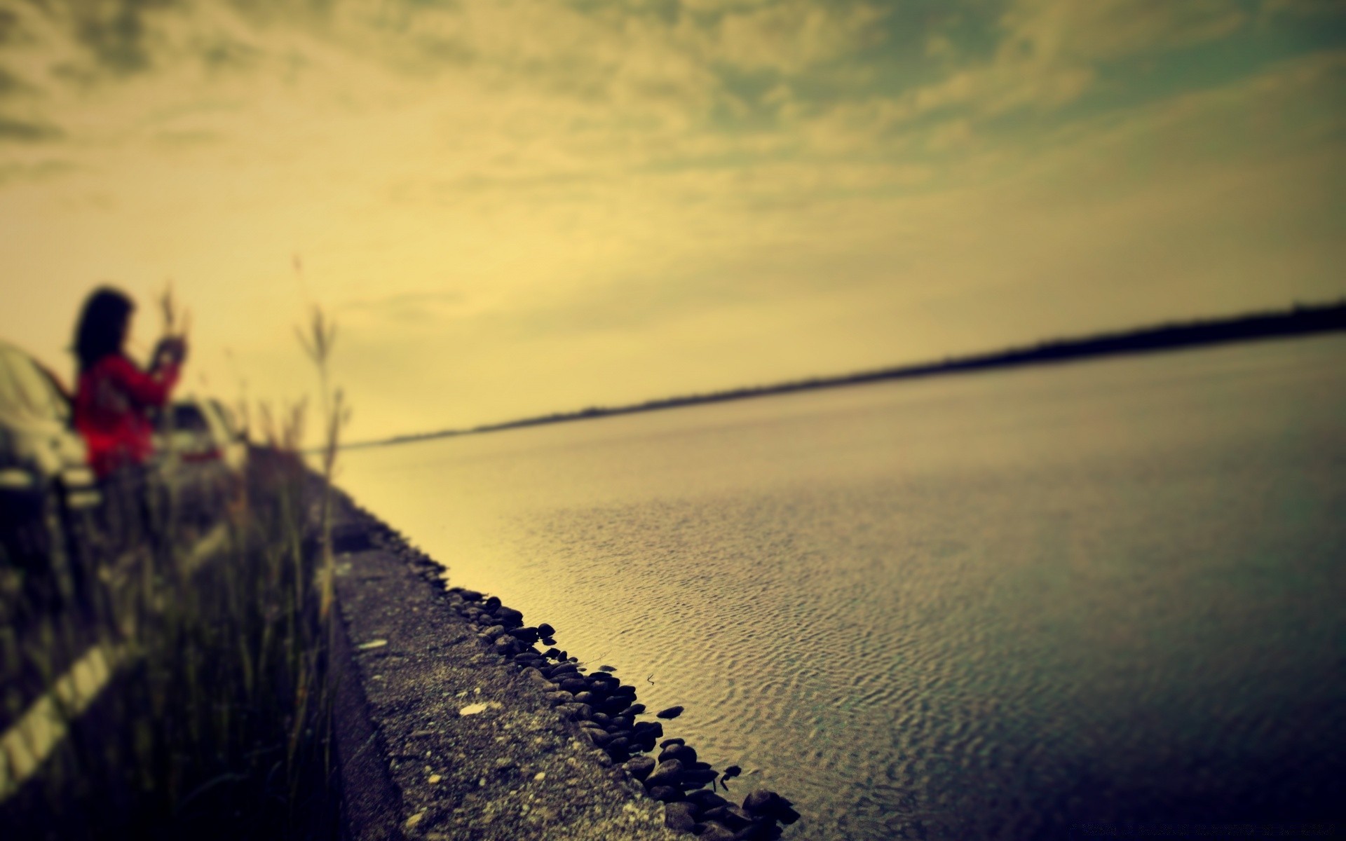 انضم الشاطئ إلى البحر في ظلام الضباب