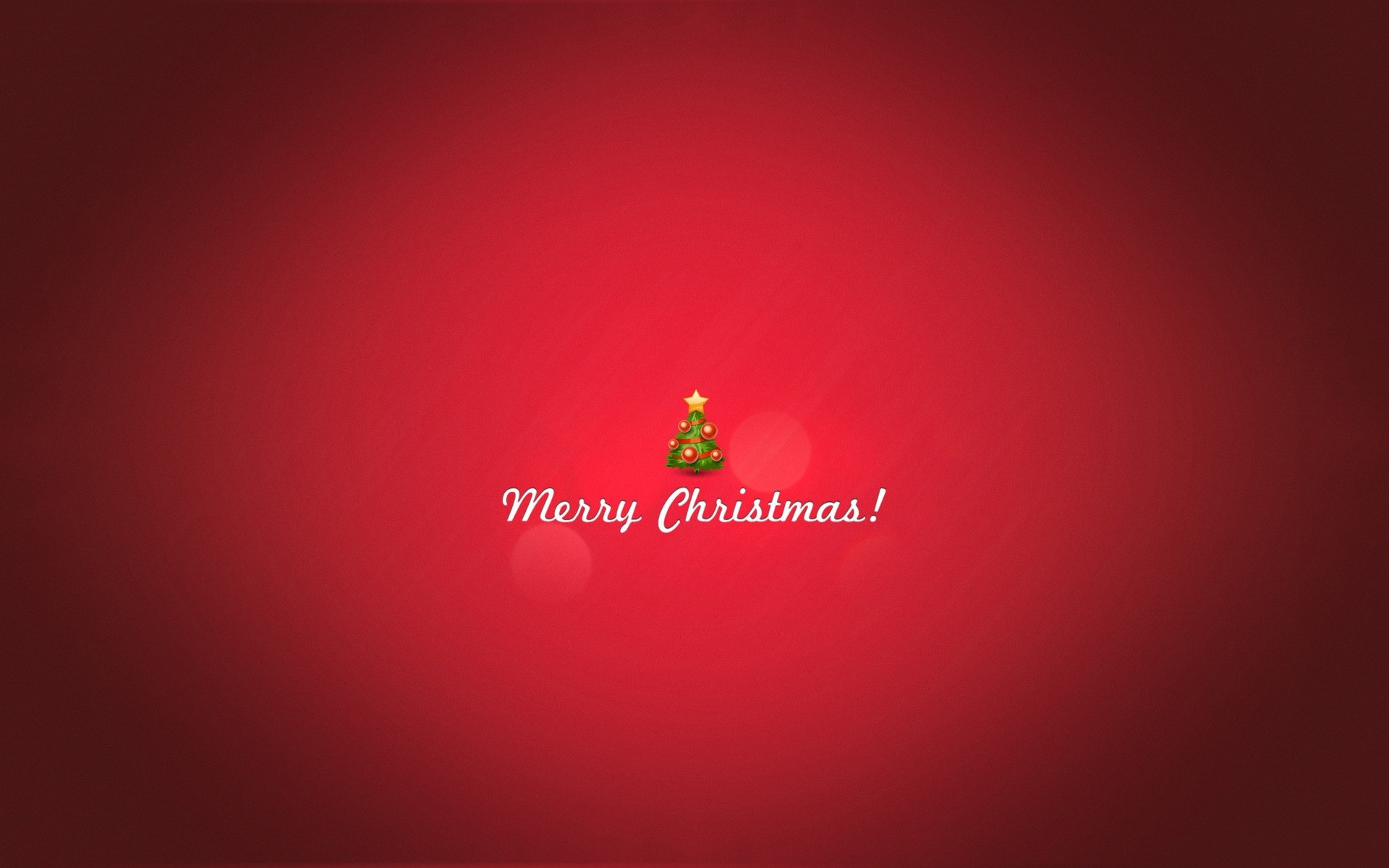شجرة عيد الميلاد الصغيرة مع النص تحتها على خلفية حمراء