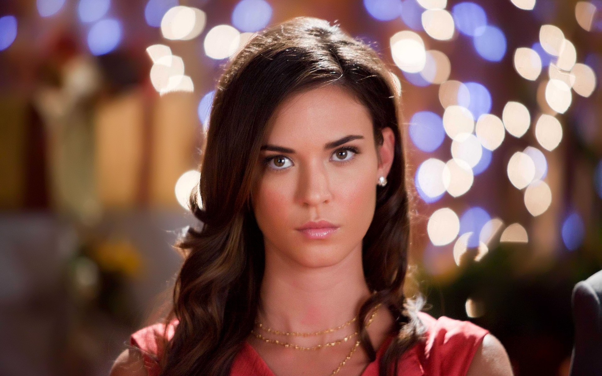 امرأة جميلة ذات شعر بني في وضع مثير تقف في ثوب أحمرامرأة جميلة ذات شعر بني في وضع مثير تقف في ثوب أحمر