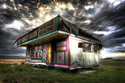 كشك متعدد الألوان ضد سماء قاتمة