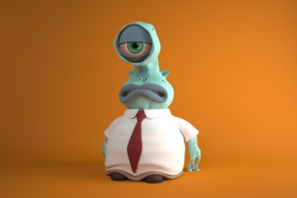 وحش البلاستيسين مع عين واحدة على خلفية برتقالية
