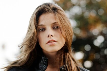 النظرة المتعبة للفتاة في الخلفية الباهتة