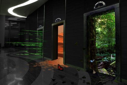 غرفة مظلمة مع مصاعد