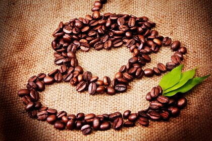 حبوب البن على الكيس
