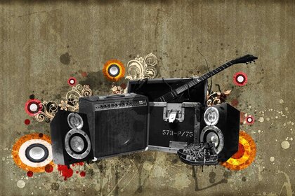 الغيتار الكهربائي مع مكبرات الصوت ومكبر للصوت