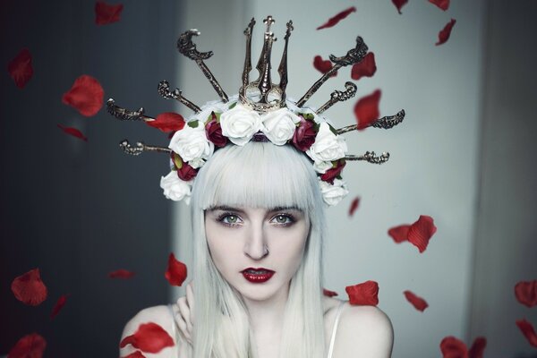 فتاة مع إكليل من الورود